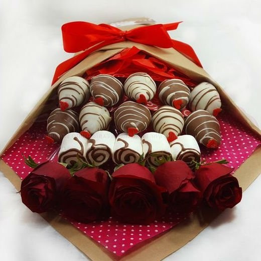 CONO PERSONALIZADO CON ROSAS ROJAS MARSHMELLO Y FRUTILLAS ACHOCOLATADAS