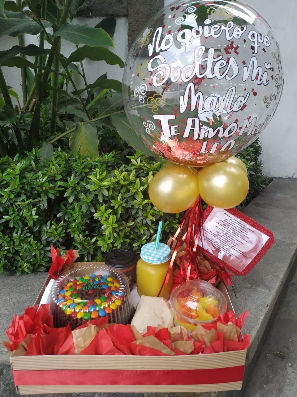 DETALLE PARA CUMPLEAÑERO... JUGO NATURAL EN JARRA MOCCA PAN CON MANTEQUILLA PORCION DE FRUTAS TORTA DE CHOCOLATE O VAINILLA GLOBO PERSONALIZADO