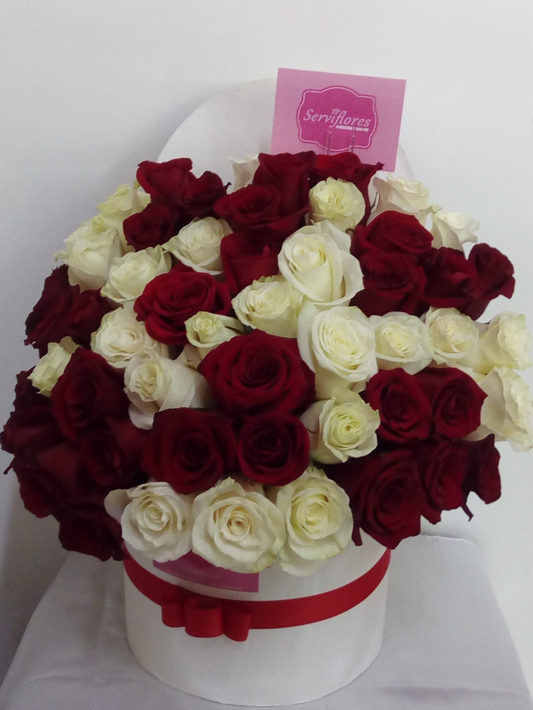 CAJA DE ROSAS EXCLUSIVAS 50 ROSAS BLANCO Y ROJO (PUEDEN ESCOGER EL TONO)