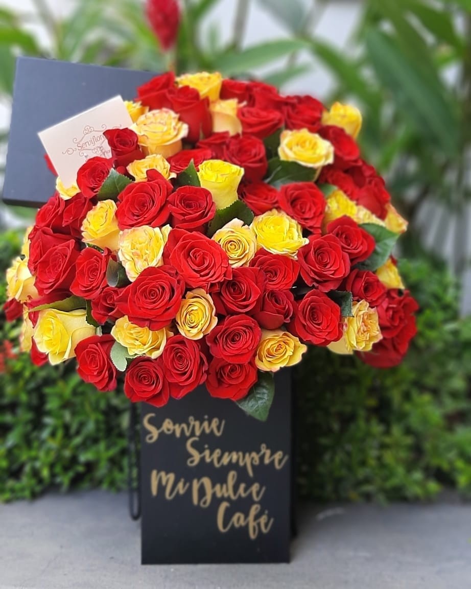 CAJA EXCLUSIVAS CON 60 CONVINACION DE ROJAS Y AMARILLAS PERSONALIZAMOS TU CAJA CON LA FRASE QUE DESEES