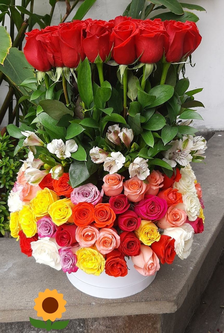 COMBINACION PERFECTA DETALLE DE 80 ROSAS ENTRE ROJAS Y CONVINACION DE COLORES A TU ELECCION EN BASE DE CAJA EXCLUSIVA