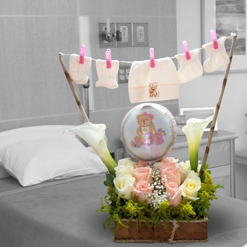 ARREGLO CON ESCARPINES GLOBO Y ROSAS DE ACUERDO AL NACIMIENTO NIÑA O NIÑO PUEDES CAMBIAR LOS TONOS